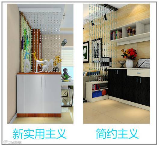 2 为了避免玄关鞋柜阻挡了客厅的采光,还可以选择珠帘或者玻璃材质来做隔断。