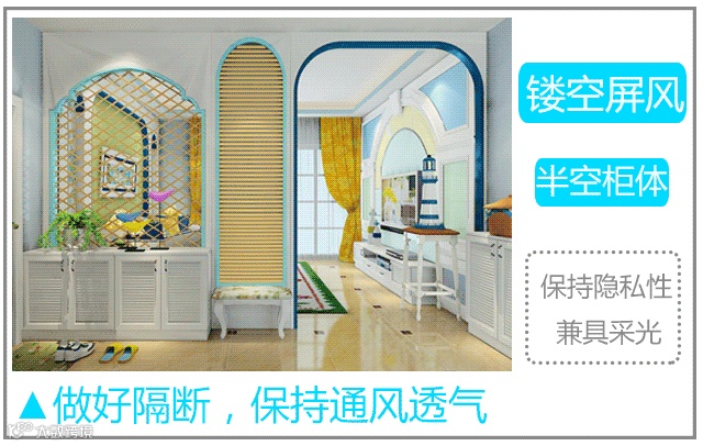 1 玄关能够很好保持主人的私密性,以防客人一眼就望穿整个客厅。但是玄关位置一般比较窄,所以,选择玄关鞋柜,一定要做好通风。一般可以添加镂空屏风或者半空柜体来做隔断以保持通风透气。