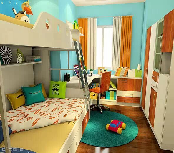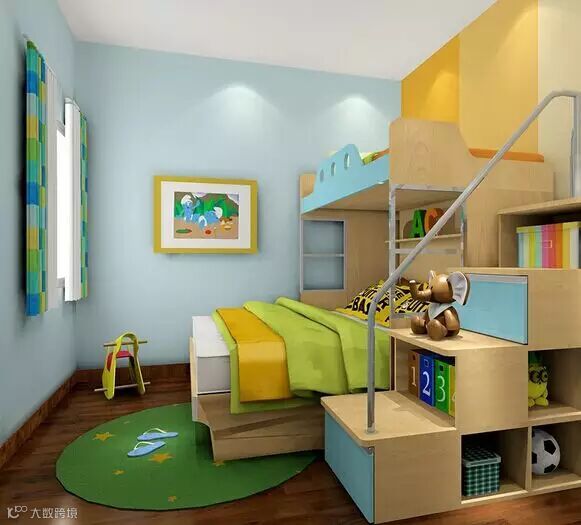 整体颜色必须活泼增加孩子对生活的感受。下床是双人设计,需要偶尔陪孩子睡也不是问题了。