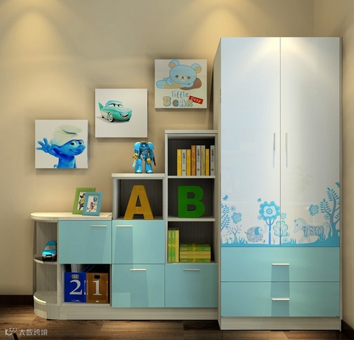 不能因为小户型就滥用大量的柜体设计,会显得房间很压抑。而选择阶梯式的柜体增加了儿童房的趣味。