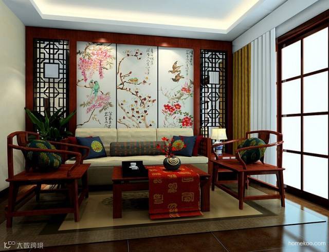 屏风、镂空窗、中国画、水墨、红木设家具,中国风元素与现代设计结合,似乎又重新散发时代的魅力。