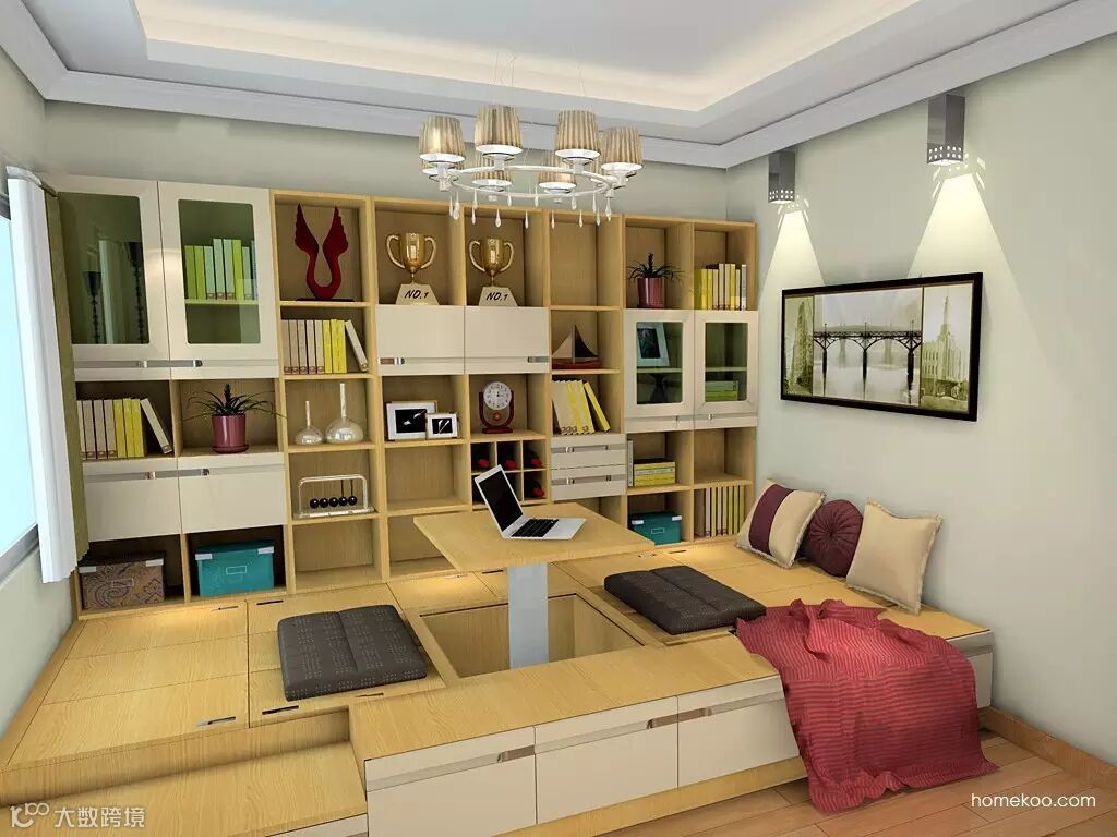 茶室、床、书房、游戏区、收纳,