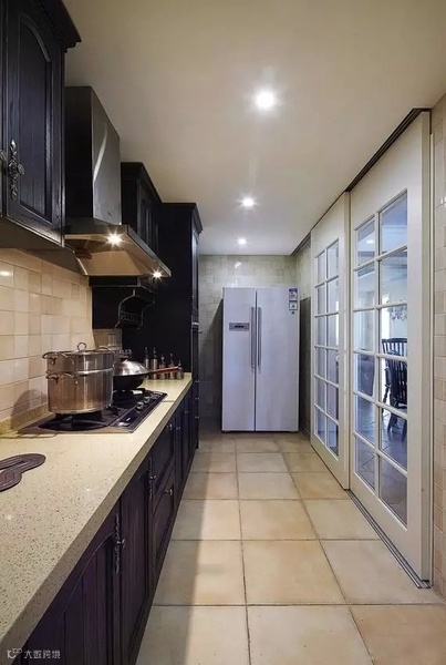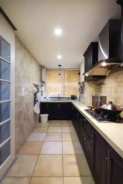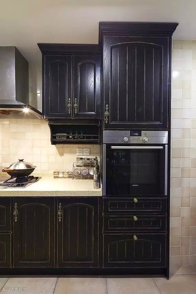 厨房,这个色调是不是有点深沉。比较适合美式。