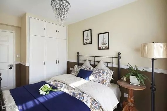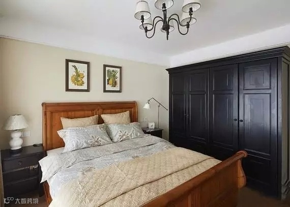 主卧的设计美式沉稳中夹杂着一丝清新,挺喜欢这种格调。