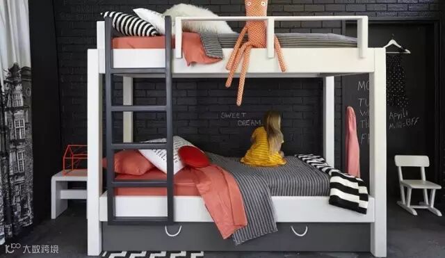 △ 天花不高的家庭更建议这种低矮的上下铺,这样的设计也更适合蹒跚学步的孩子,安全系数高些。