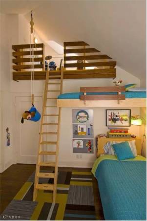 △ 这样像游乐场一样的场景床设计也是孩子们的心头好,提高空间利用率的同时,也让两个孩子可以在家里自由玩耍。