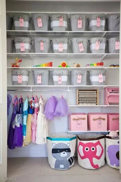 △ 将家中的储物空间颜色化、标签化,小孩子在成长初期对于事物的认知不够明确,因此我们需要给他们进行一定的媒介进行引导,帮助他们学会整理收纳自己的物品。