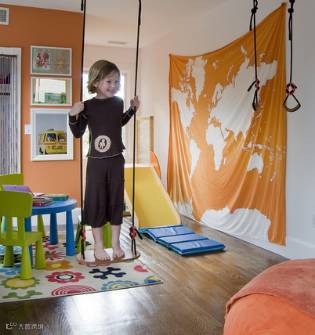 △ 秋千和吊椅也是孩子们喜欢的游乐项目之一,不要害怕他们会受伤,他们很聪明,让他们学会保护自己。