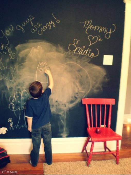 △ 很多时候我们会恼怒孩子们在墙上,地面上,家具上,甚至是一些匪夷所思的地方乱写乱花,这是我们为何不刷新一面墙给孩子作为专门的“创作基地”以解救那些无辜的“受害者们”呢?