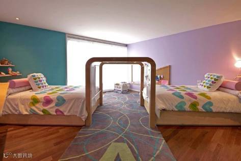 △ 一样的两张床和色调更适合性别一样的宝贝,性别不一样的孩子虽然年纪还小,也应该教他们性别区别。