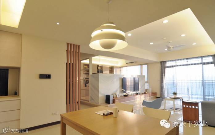 设计师运用木格栅的方式,挥洒在入门的屏风与天花处,轻轻散发日式的闲适氛围。