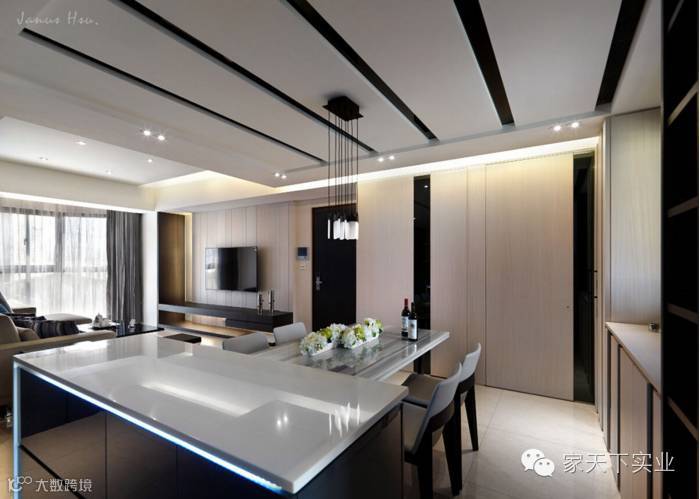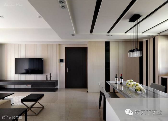 天花板设计刻意留缝隙间隔,创造天花的深度感,修饰屋高不高的问题。