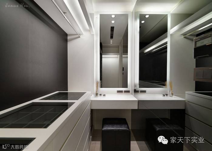 释出部分的主卧空间,为儿子打造专属的更衣室,透过镜面创造空间的放大感。