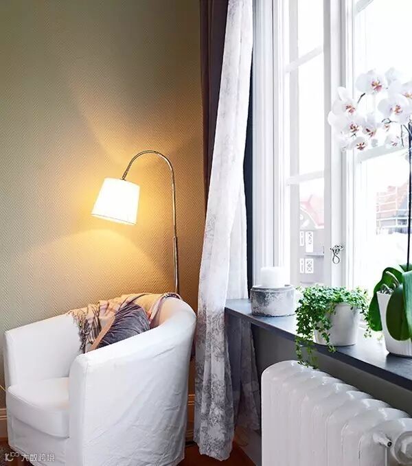 ▲ 角落放置一个单人沙发,一盏落地灯,既可以在这里看书,也可以织毛衣等做各种事情,随心随性。