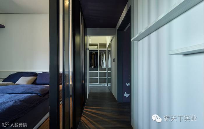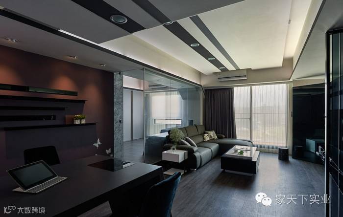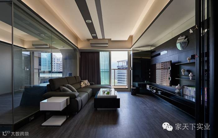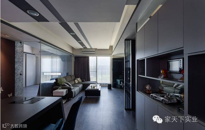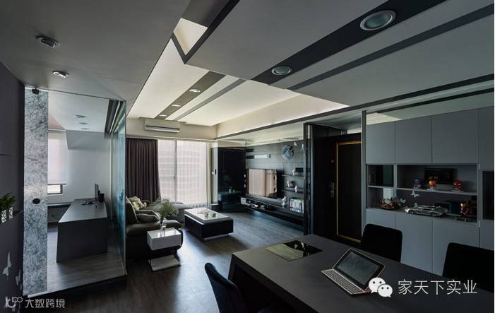 此案为单身男子的公寓,设计师了解屋主偏爱现代风格的室内家居,因此藉由黑色调作为整体铺陈,使用金属及反射材质让空间增添质感,视觉上也能达到延展、通透之效;以拉门的形式作为领域划分,让空间格局间更显弹性与灵活。