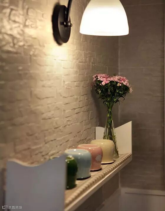 在壁灯柔和的光照下的墙面,释放出浪漫舒适的温情