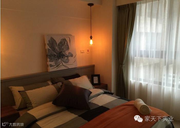 优雅的白色窗帘使筛进的采光更为朦胧唯美,搭配床侧一盏情调十足的昏黄灯光,塑造慵懒、放松的卧眠氛围。