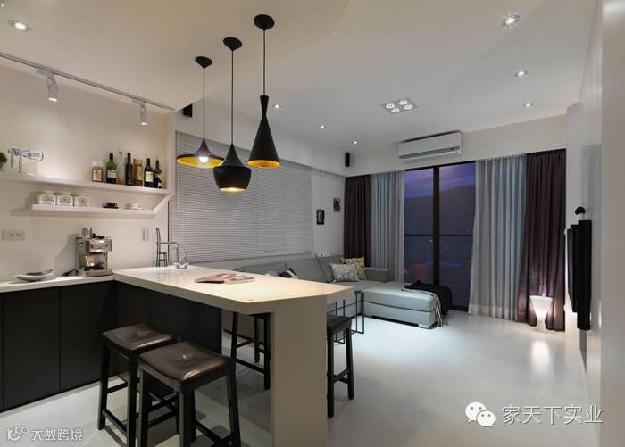 以白色为基调,加入黑色与铁件的刚直线条描廓,再搭配合宜的灯光设计,为家庭幸福加温。