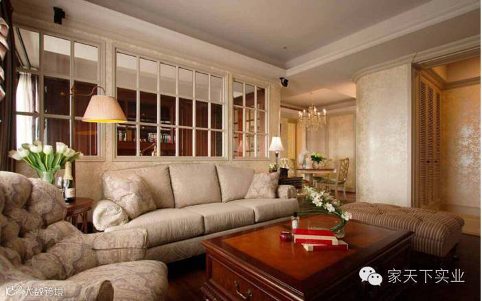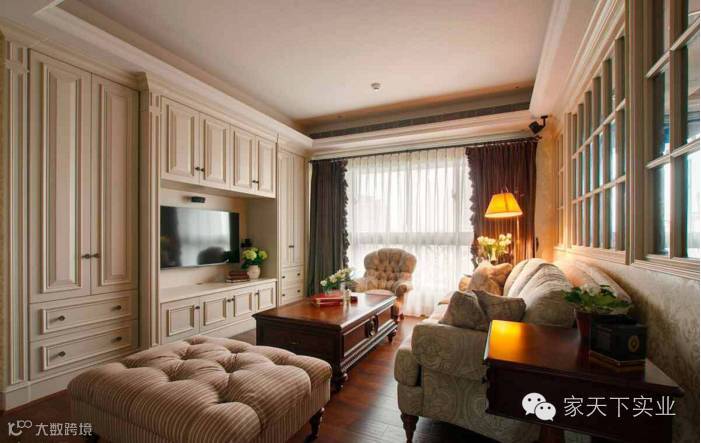 来到客厅,整道古典线板的白色柜面,结合收纳机柜等多元功能,对尊贵生活与实用性有了更具象的演绎。