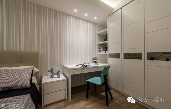 掌握比例并整合线面表情,让书桌到柜体呈现连贯的效果,顺势延展空间的视觉尺度。