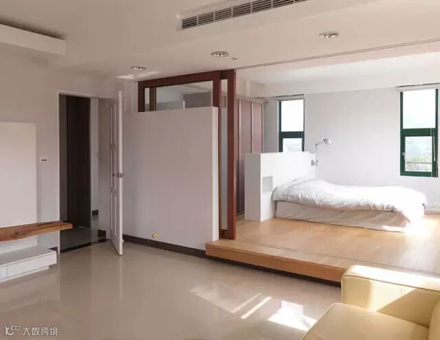 ▲之前编辑也看见过这样的床,的确,这样的起居床设计出现在日式的风格中也不足为奇。设计师架高了地板与推拉门,类似榻榻米的感觉,又能让空间的利用效果达到最大化,看起来超好看。