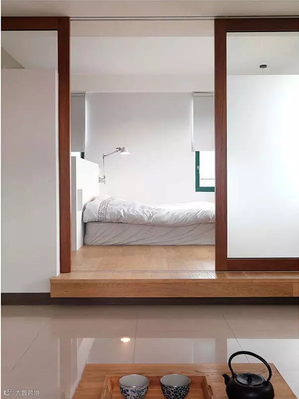 ▲超喜欢这种架高床身的设计,可能是与中国固有的设计不同,这是带着一点特色的,觉得很有趣很新鲜。推拉门的设计也良好的保证了隐私又不会觉得沉闷不透风。很清爽啊看起来。