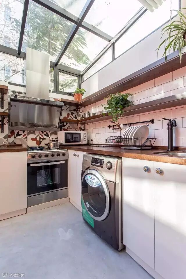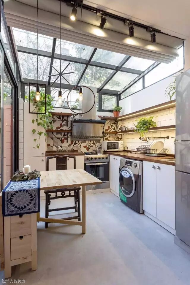 3、露台的小黑屋拆掉,做了一个玻璃房,作为餐厨一体的开放式设计;