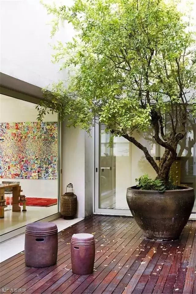 将绿植珍藏,闲坐于屋内,品茶赏景