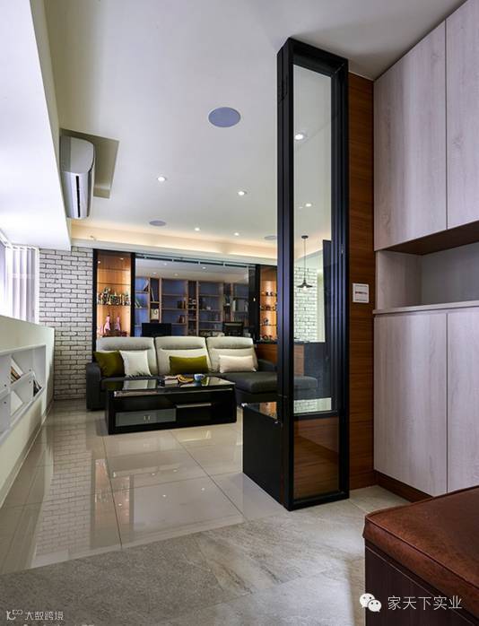 此案是一个老屋翻新的家居空间,由于屋主热爱黑色系,绝享设计特别以工业风塑造整体氛围,玄关处以折叠式拉门作为领域划分,工业色彩的黑铁件结合玻璃材质,视觉上呈现轻量化的质地。不仅呈现沉稳个性化的样貌,更呼应主人独特的气质。