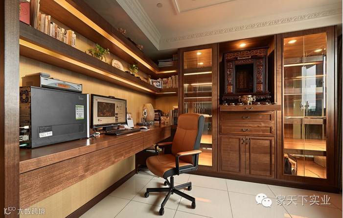 同样延续木质元素作为书房的氛围营造,让佛龛得以融入整体空间主题。