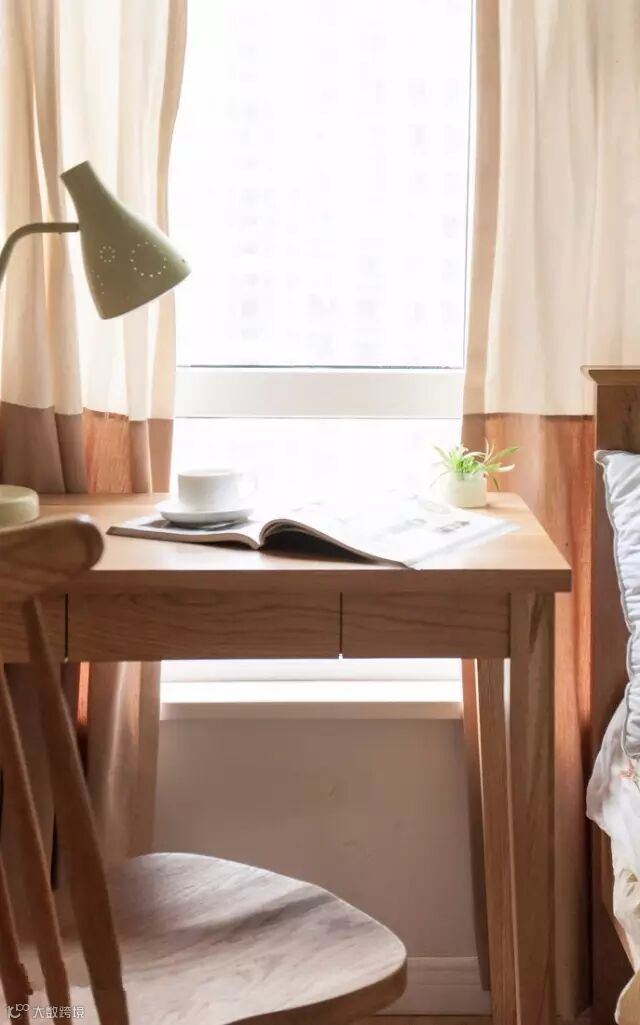 ▲ 木质的床头和床头柜,清新舒适。