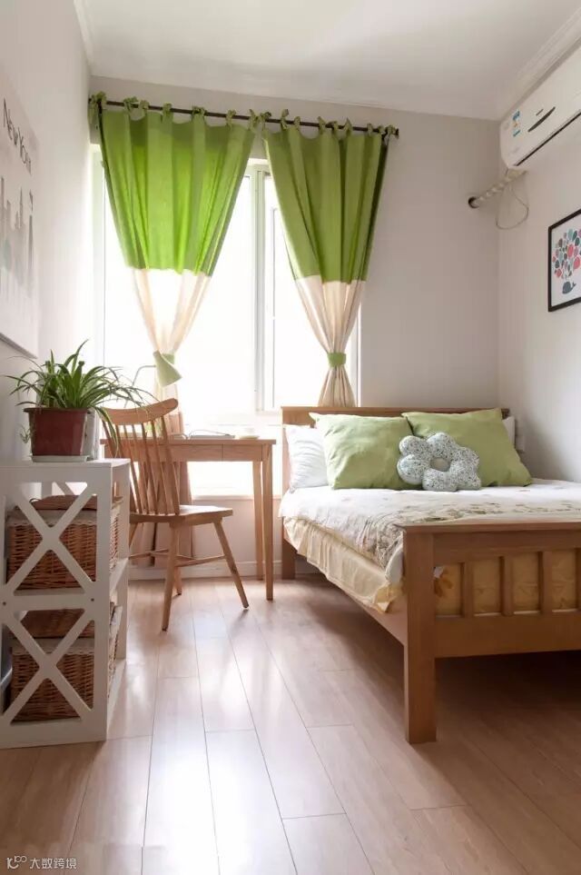 ▲ 儿童房用绿色做提亮,满满的小清新情结。陈列虽然简单,但完全可以满足日常的功能需求。