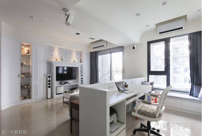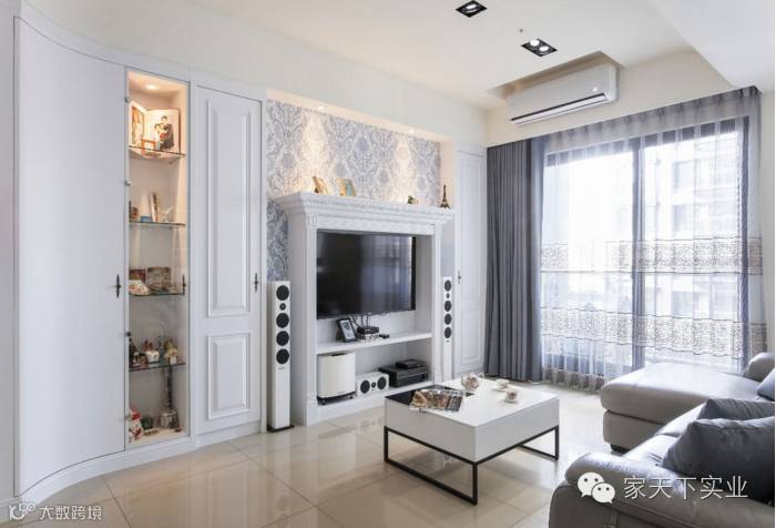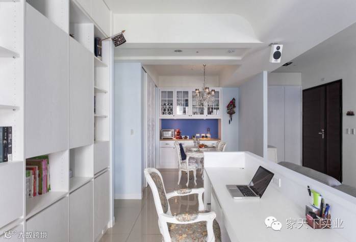 本案中,偏好美式风格的屋主夫妻,邀请设计师量身打造拥有明亮表情的美式居家,并以“完整”与“弧形”的设计主旨融入原始材质样貌,让此案在清澈中带有浪漫的水蓝风采。