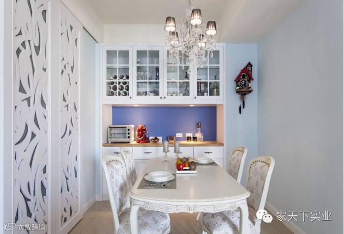 柔和的雕花板造型门片搭配喷砂玻璃,在阻挡油烟的同时,也成为厨房与餐厅间的美丽过渡,令人赏心悦目。