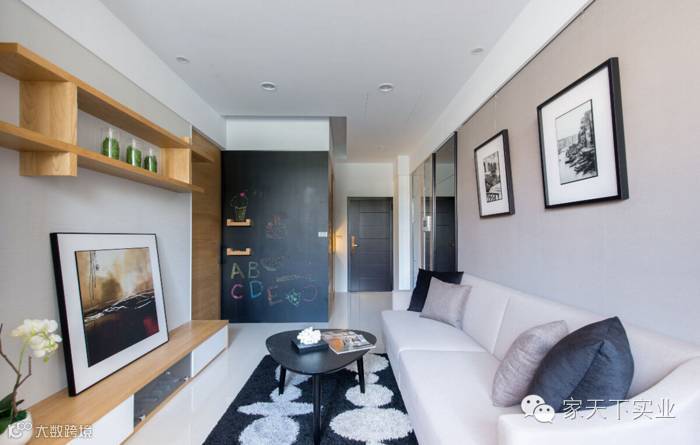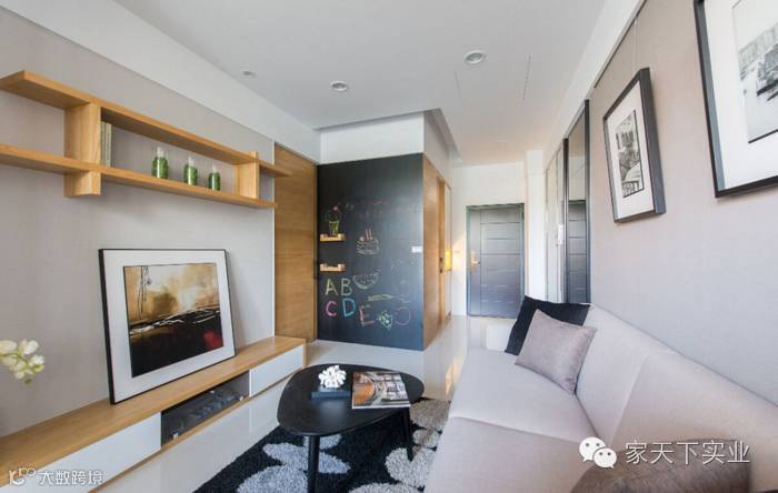 回应屋主的期待,设计师运用黑板漆,在入门转角处构筑一处可留言与涂鸦的创意天地。