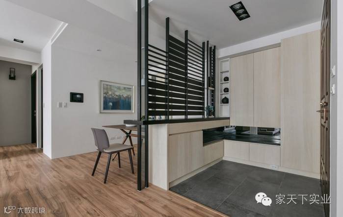 设计师以灰色进口砖作为玄关地板,与内部空间做明确划分。