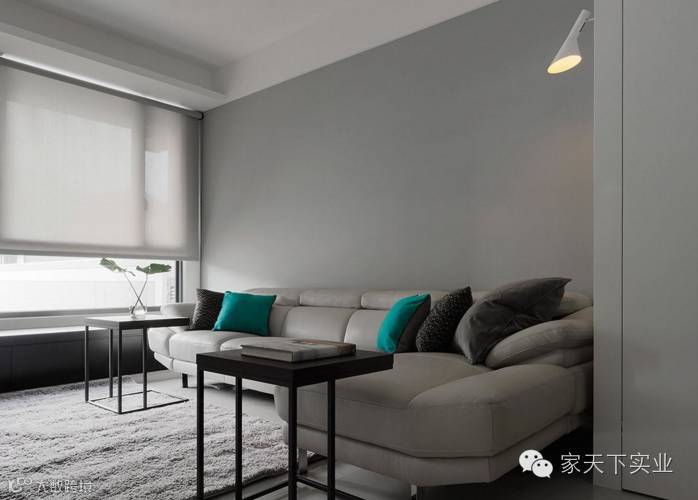 沙发背墙仅以单纯的灰色调铺陈,搭配窗外洒落的纯净日光,宁静之中带有自然活力。