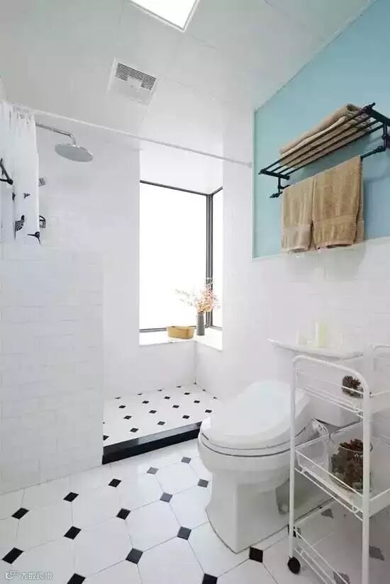 白色瓷砖铺贴的卫浴空间显得干净而清爽。