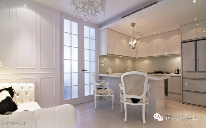 在城市中品味巴黎公寓的浪漫情怀,让新旧元素交织相遇,将料理区块从玄关搬移到客厅前方,开放式连贯串起视野的开阔。文化石、线板与砖墙纹理在玻璃马赛克与大理石面光泽晕染,氛围描绘倾诉下异国情怀的每一夜。
