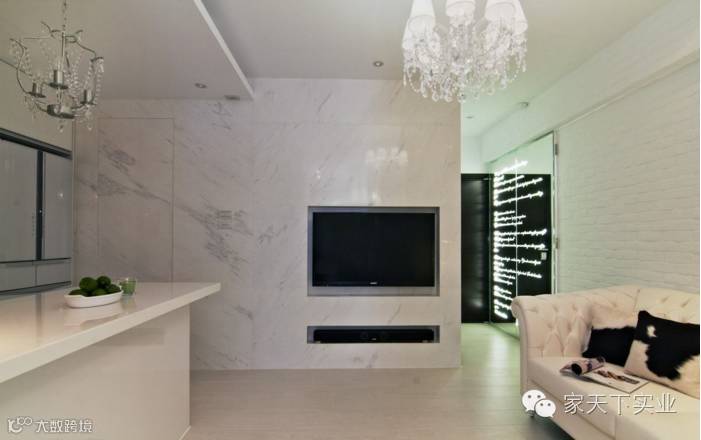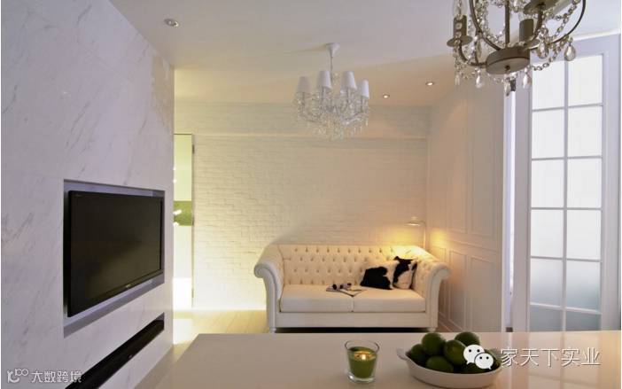 新旧元素的转换,设计师以文化石的白,定位出沙发背墙的安稳宁静。