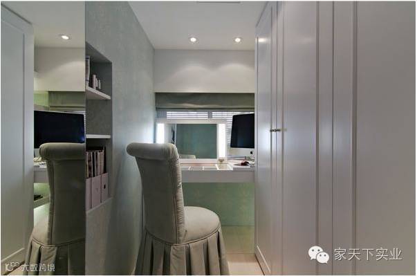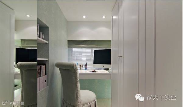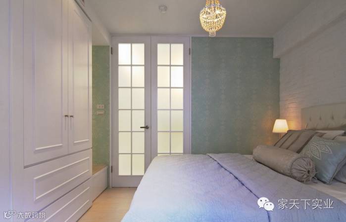 白色文化石与青绿色壁纸混搭,在洁白中加入了可人色彩。