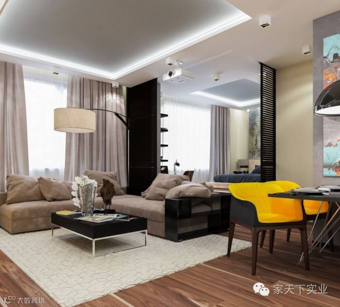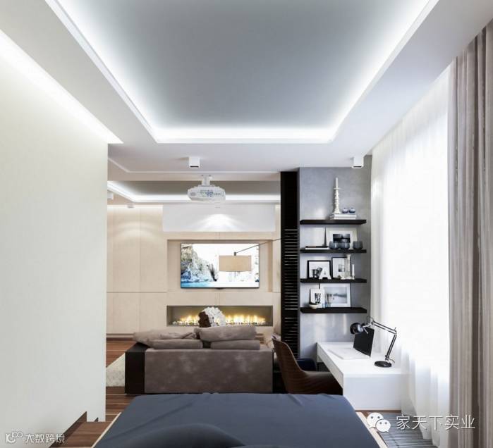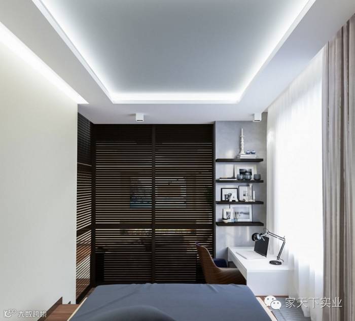 天花板规划入暗藏灯槽,增加空间的整体质感和美学层次。卧室与客厅紧连,打造自在惬意的轻松生活。