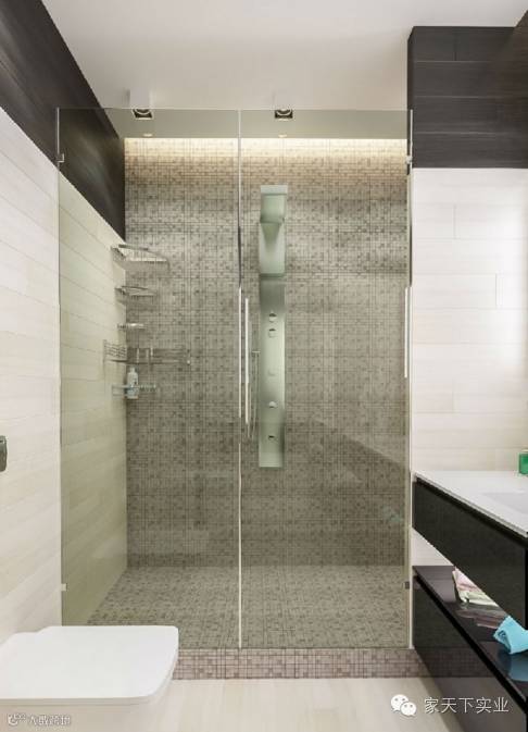 木质墙面和地板营造自然清新的卫浴享受,并拥有出色的干湿分离功能。