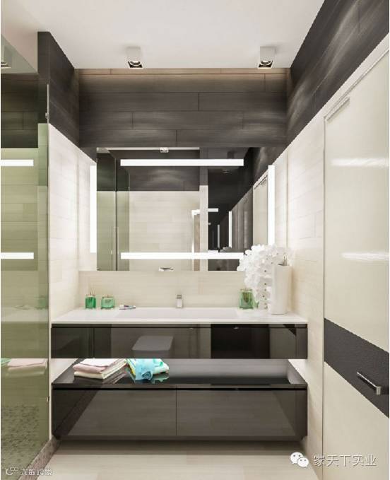 盥洗区采无缝设计,充分利用空间,并整合大容量的收纳抽屉,便于屋主拿取使用。