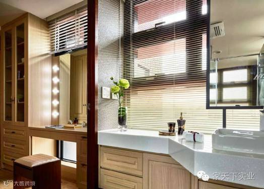 卫浴台面以折角的方式,引导视觉及行速动线的开阔感。