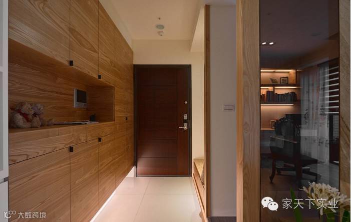 衔接玄关与公领域的转角处,以圆弧、斜角造型作为视线的缓冲,简单点缀饰品软装,即可成为家中的一抹美丽风景。