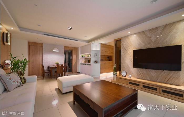 以大理石作为电视主墙,其雅致的色泽与特殊的对花纹理,塑造空间的高雅氛围。