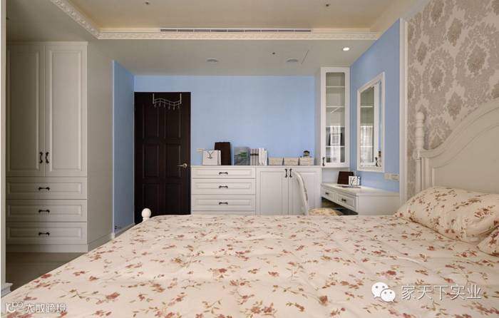 主卧室改以甜美的乡村风作呈现,满足女主人浪漫的少女情怀。