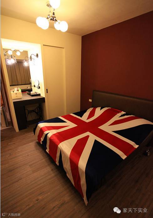 大中小三个掌印,拓印在抹刀粗刮的水泥电视墙上,粗犷中透出温润的情感温度,男主人期待的美式粗犷工业风,设计师以裸露游走的喷黑管线,搭配深灰色天花、水泥粉光地板与红砖文化石墙面,架构风格延伸的基础。