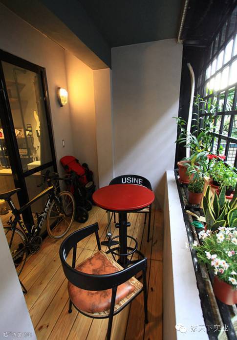 微内推墙面并铺饰南方松地板,佐搭休闲桌椅构筑一方闲情角落。